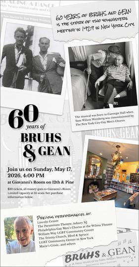Tickets: Bruhs and Gean or buy at Giovanni's Room. Questions.?